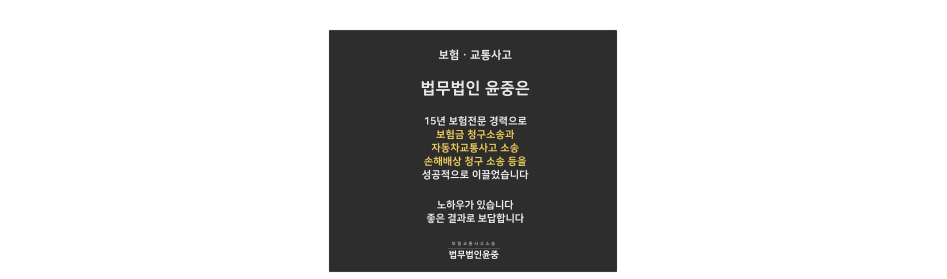 법무법인 윤중은 15년 이상 보험 분야에 집중해 온 보험 변호사센터로, 보험금 청구소송부터 자동차교통사고 소송,
