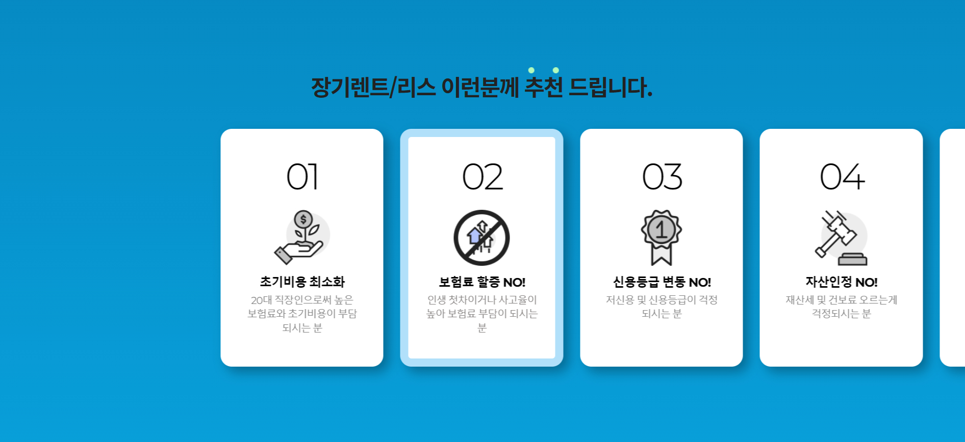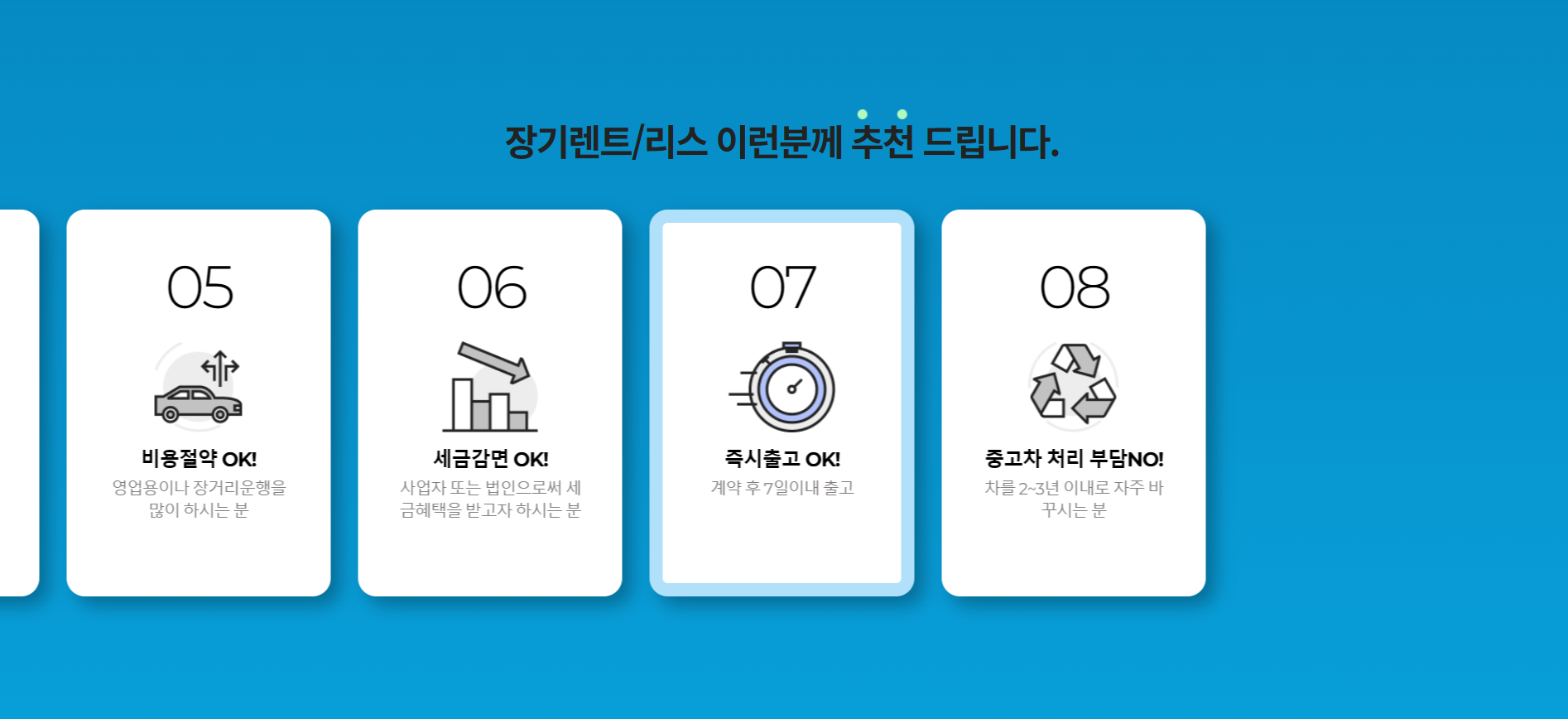 최근 차량 이용 방식이 다양해지면서 구매 대신 장기렌트를 선택하는 분들이 꾸준히 늘고 있습니다. 장기렌트는 초기 비용 부담 없이 렌터카 회사로부터 차량을 임대해 월 이용료를 납부하며 사용하는 방식으로, 차량 관리와 유지에 대한 부담을 줄일 수 있다는 특징이 있습니다. 특히 보험, 정비, 세금 등의 관리 요소가 포함되어 있어 차량 운용에 익숙하지 않은 분들도 비교적 편리하게 이용할 수 있습니다.